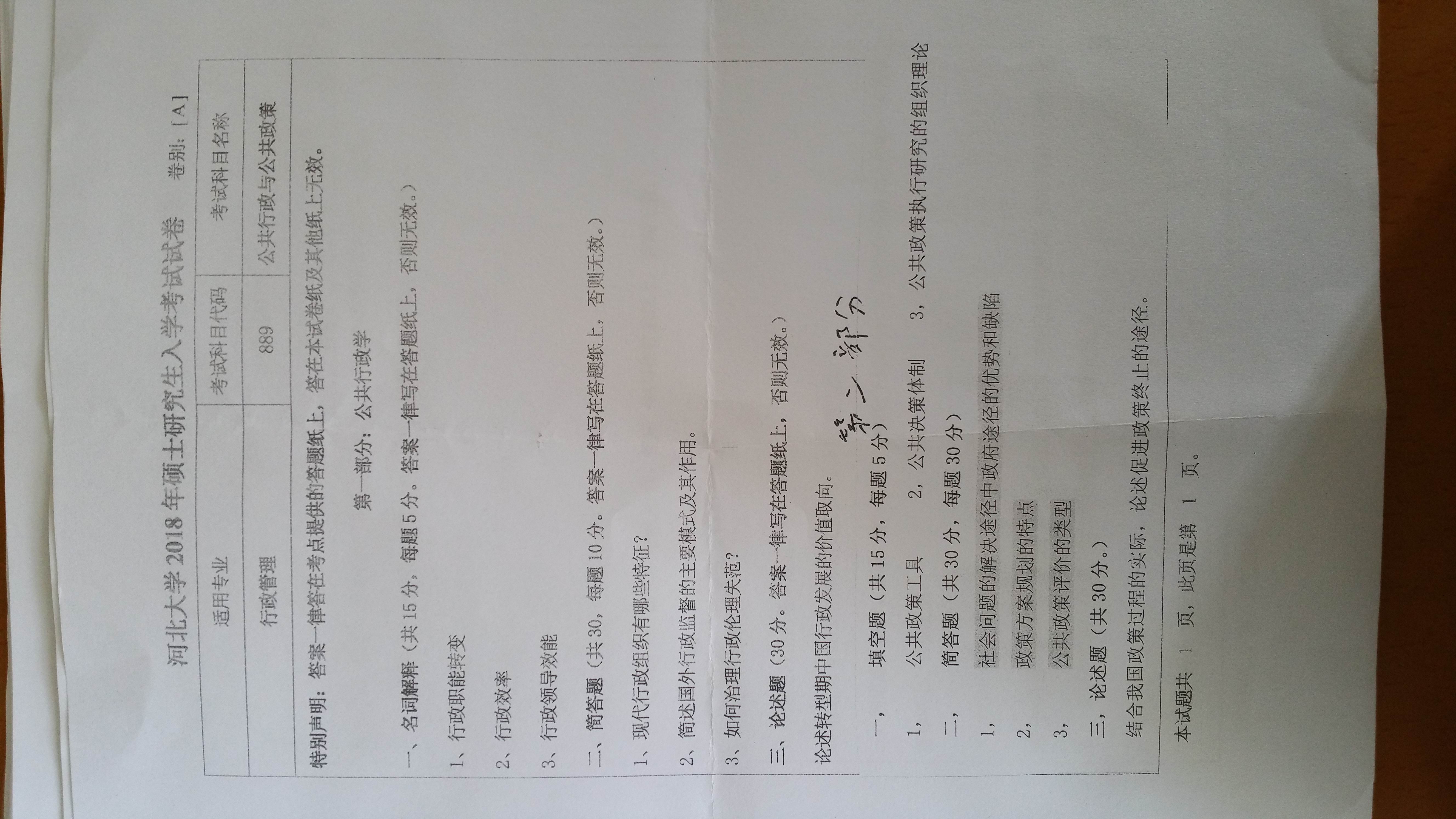 三、2018河北地质大学行管考研真题