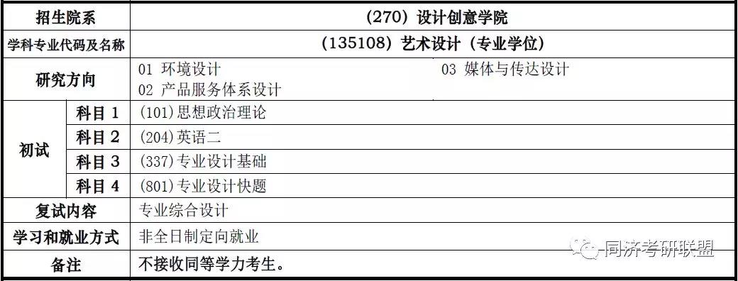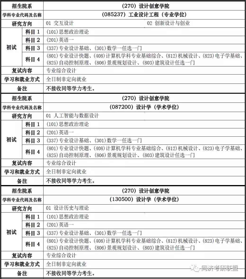 2019年同济大学设计创意学院考研招生专业、考试科目