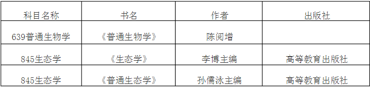 ①101思想政治理论②201英语一③639普通生物学④845生态学 |
