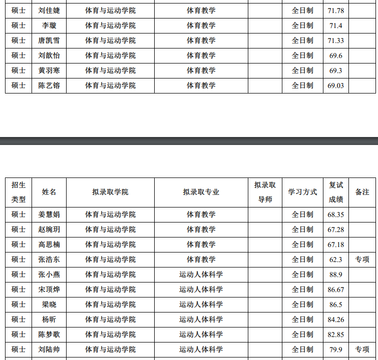 2019年北京师范大学体育与运动学院研究生推免拟录取名单
