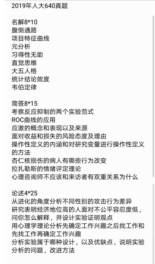 2019年中国人民大学640心理学基础考研真题