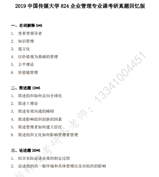 2019中国传媒大学824企业管理专业课考研真题回忆版