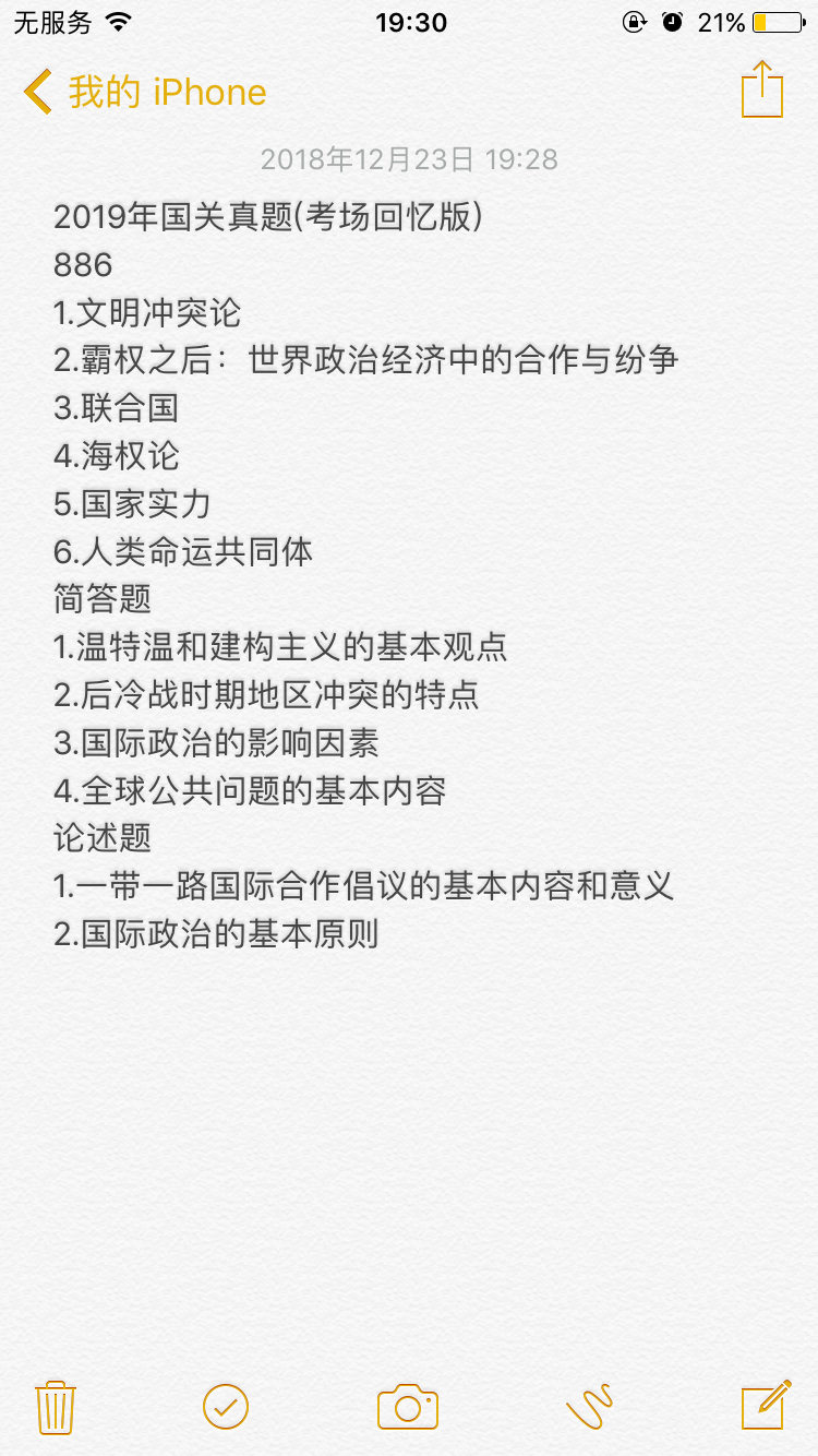 华中师范大学19国关886真题考场回忆