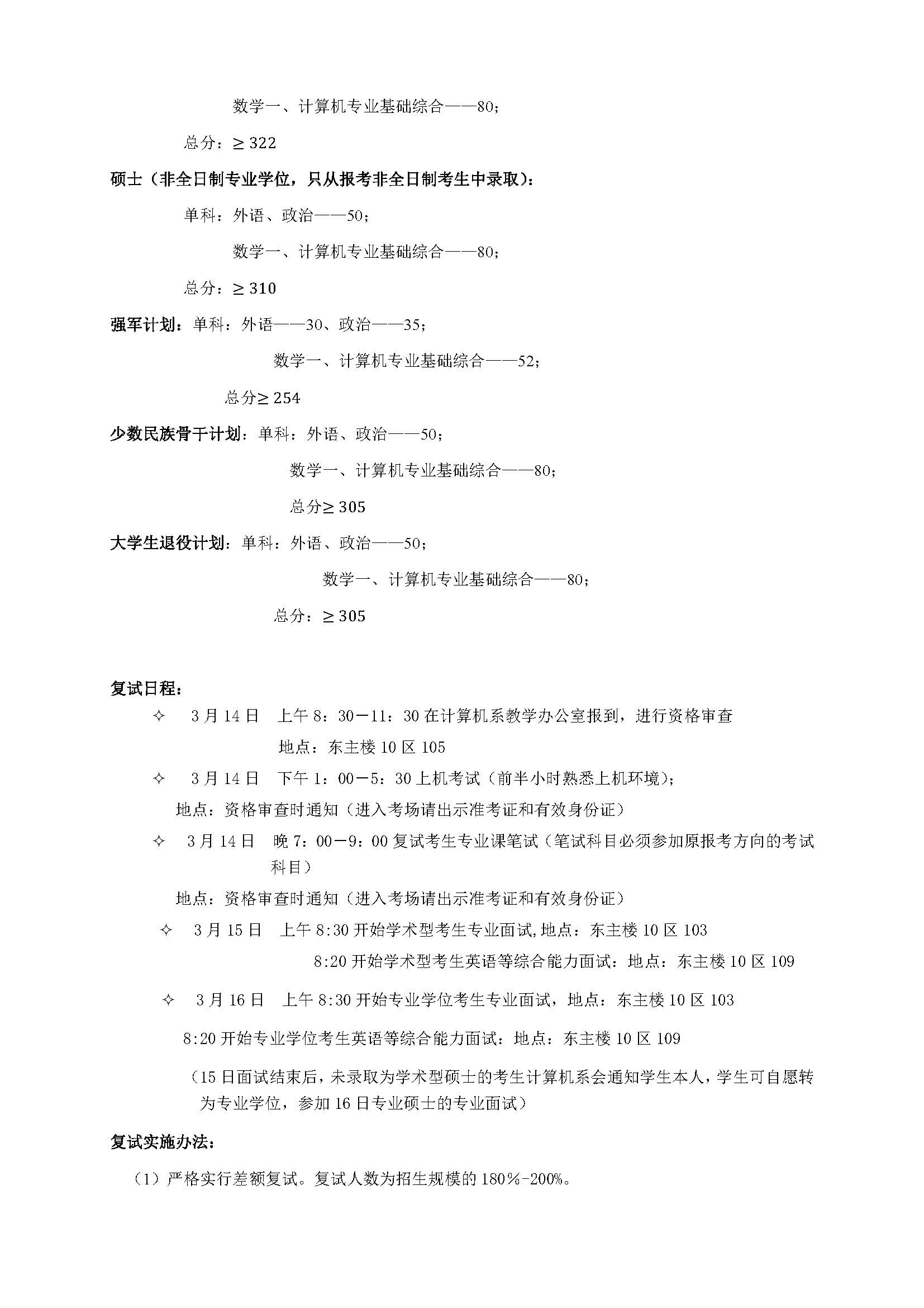 2019年清华大学计算机科学与技术系复试分数线及名单