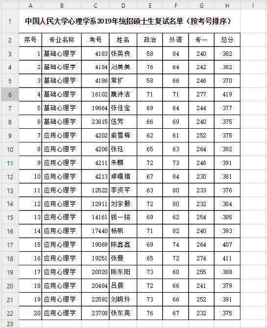 四、复试对象为参加当年全国硕士研究生统一考试报考本院相关专业的考生中,初试笔试成绩达到心理学系规定的标准:政治55分,英语60分,总分370分,详见复试名单。