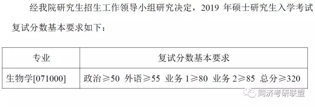 同济大学生命科学与技术学院2019年复试分数线