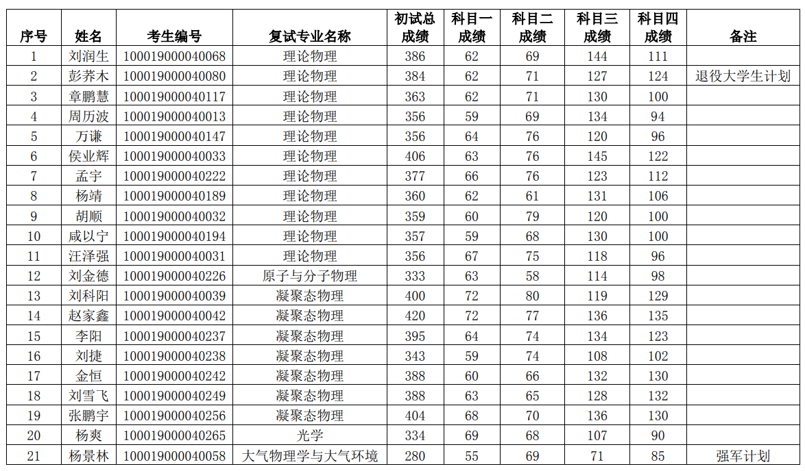 2019年北京大学物理学院硕士入学考试复试规则及名单
