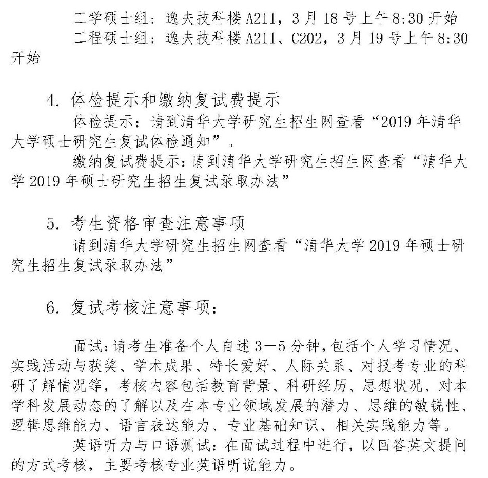 2019年清华大学电机系复试分数线及名单