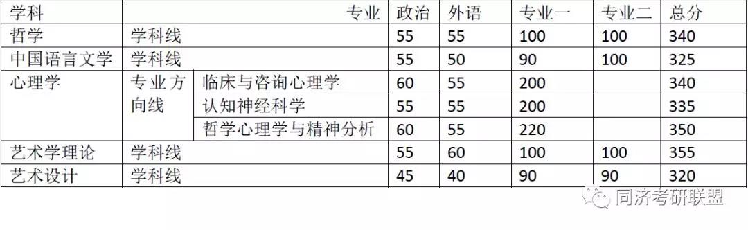 同济大学人文学院2019年复试分数线