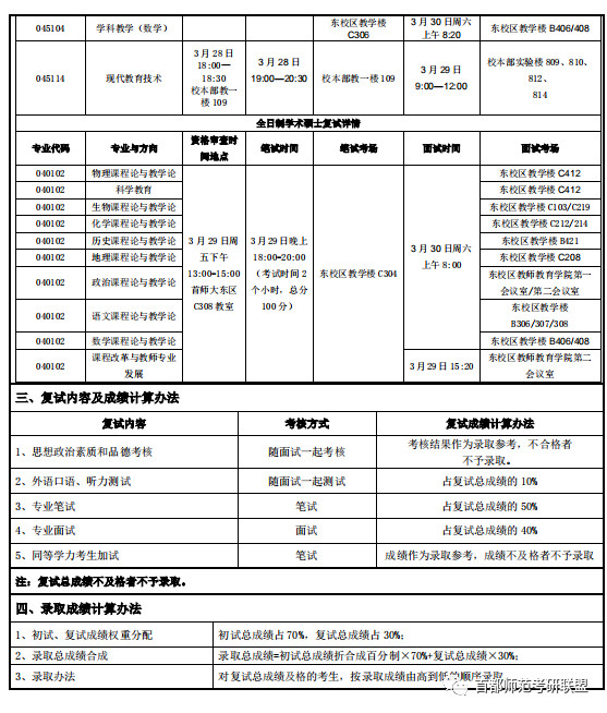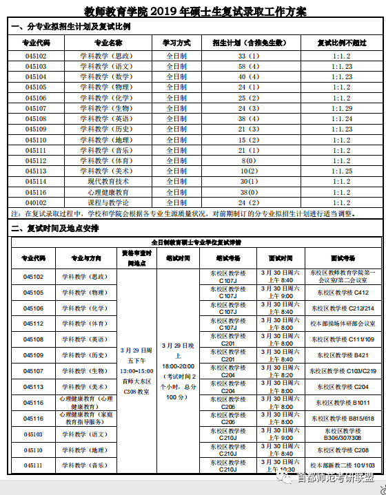 2019年首师大教师教育学院硕士研究生复试录取方案
