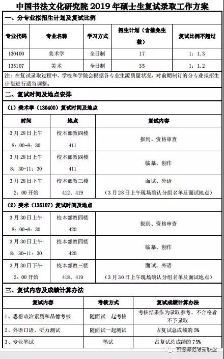 2019年首师大中国书法文化研究院硕士研究生复试录取工作方案