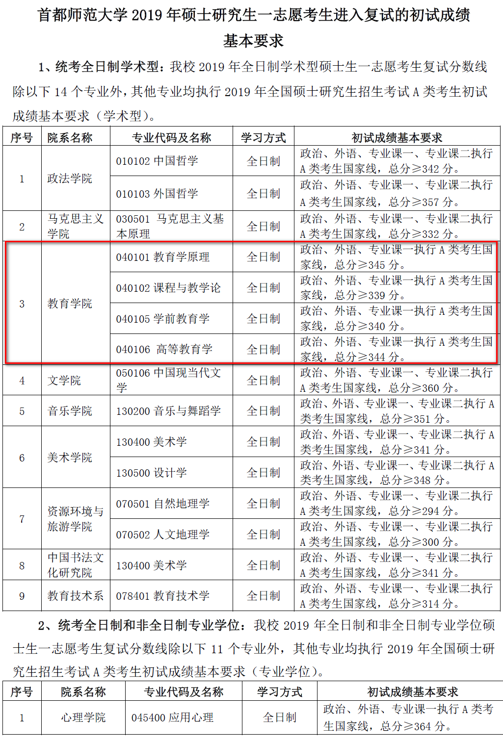 3、单考考生进入复试初试成绩基本要求