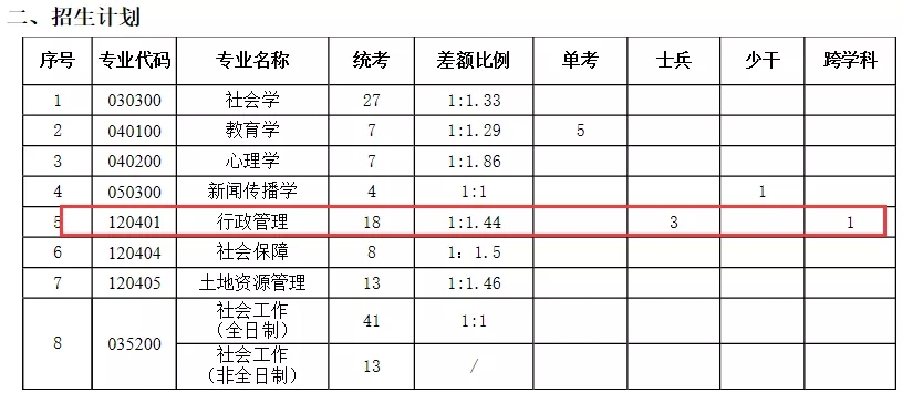 公管学院各专业招生计划: