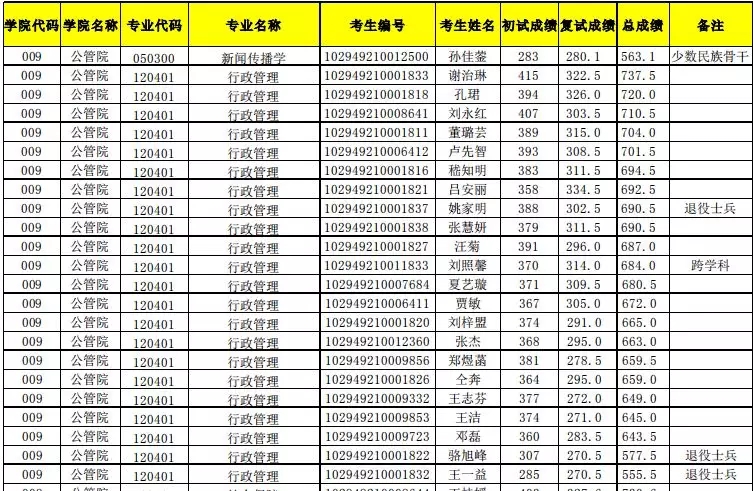 2019年行政管理考研拟录取名单