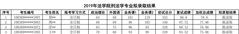 2019年对外经济贸易大学刑法学专业硕士研究生拟录取名单