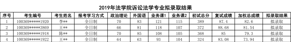 2019年对外经济贸易大学诉讼法学专业硕士研究生拟录取名单