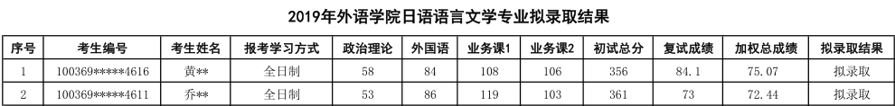 2019年对外经济贸易大学日语语言文学专业硕士研究生拟录取名单