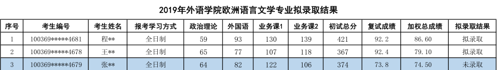 2019年对外经济贸易大学欧洲语言文学专业硕士研究生拟录取名单
