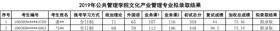 2019年对外经济贸易大学文化产业管理专业硕士研究生拟录取名单