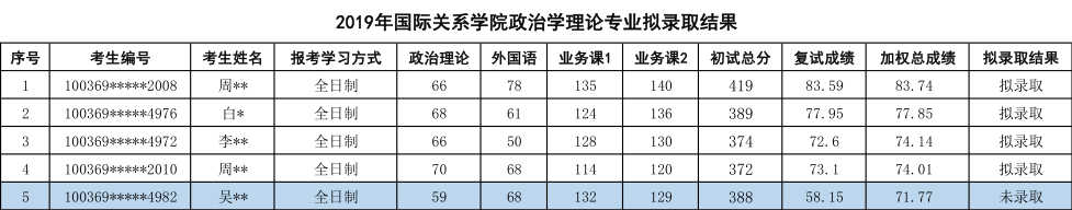 2019年对外经济贸易大学政治学理论专业硕士研究生拟录取名单