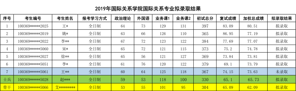 2019年对外经济贸易大学国际政治专业硕士研究生拟录取名单