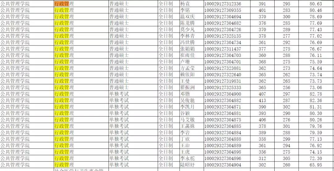 2019年中国人民大学行政管理考研拟录取名单公示!