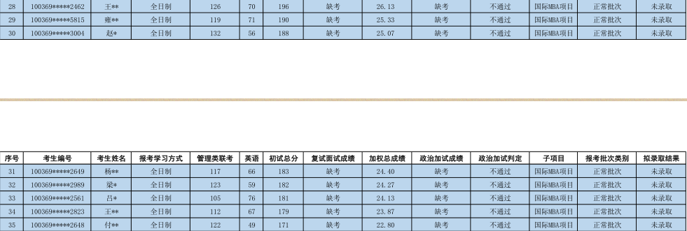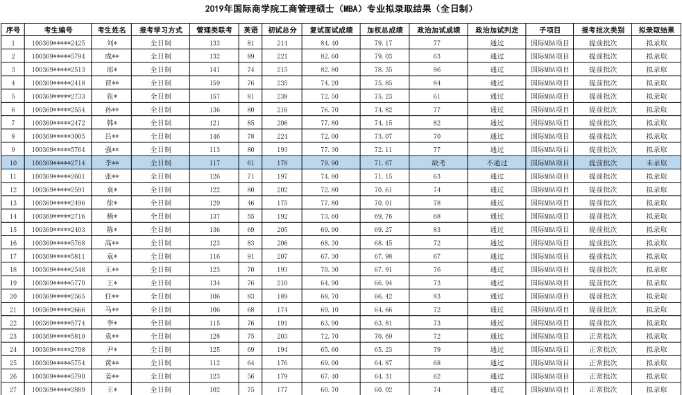 2019年对外经济贸易大学工商管理硕士(MBA全日制)专业研究生拟录取名单