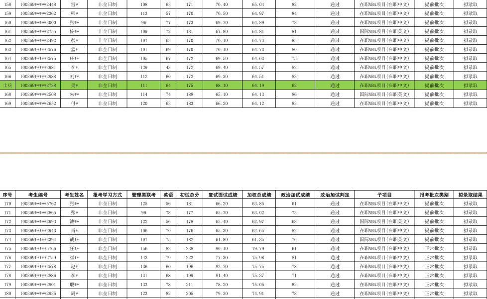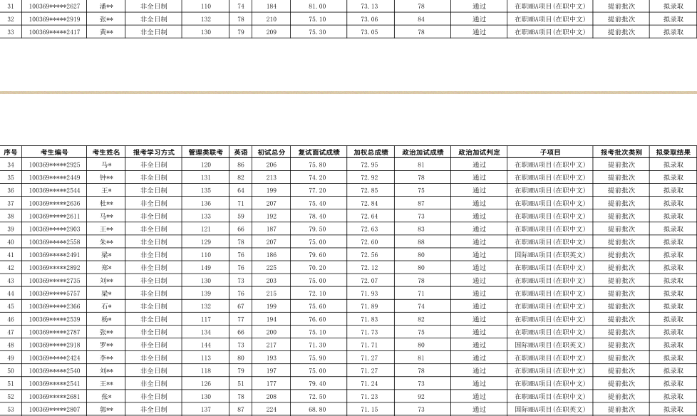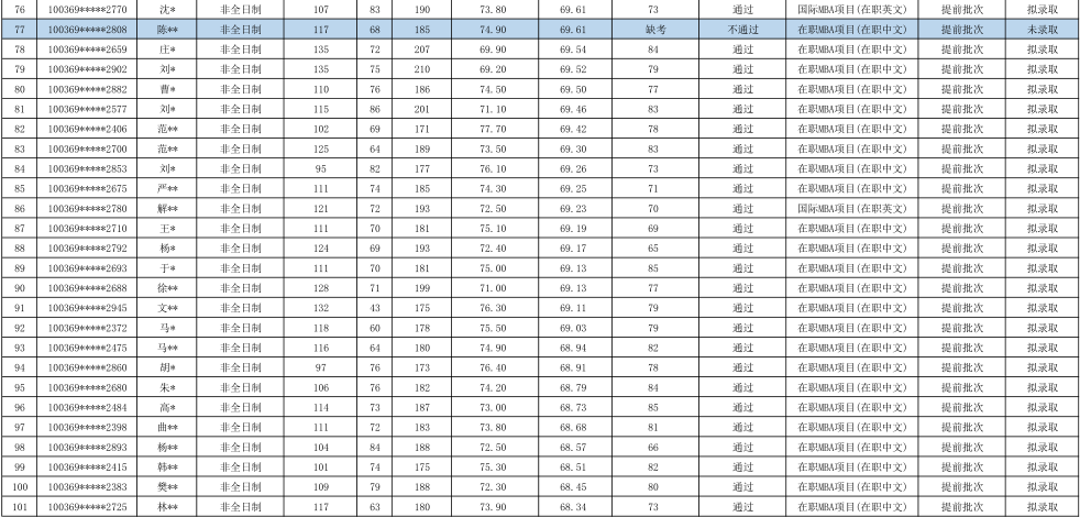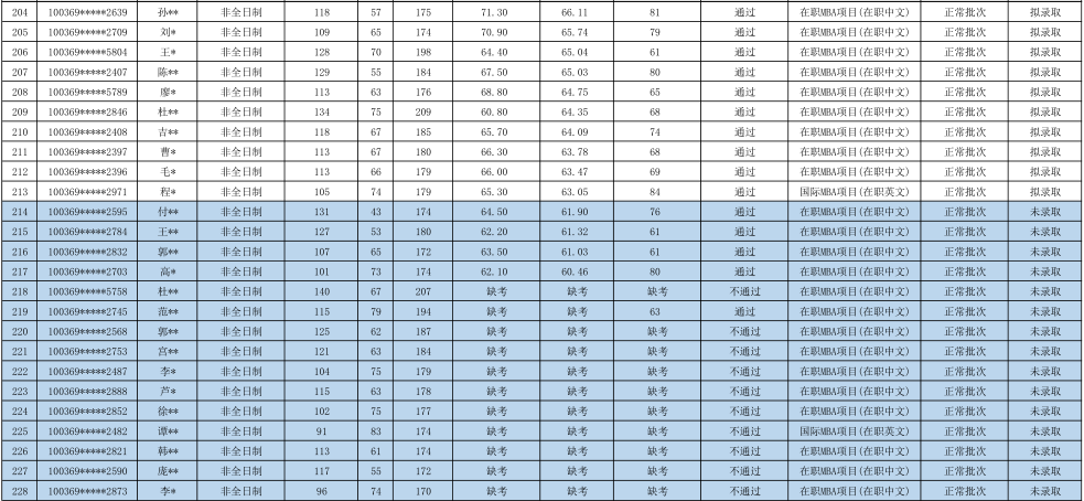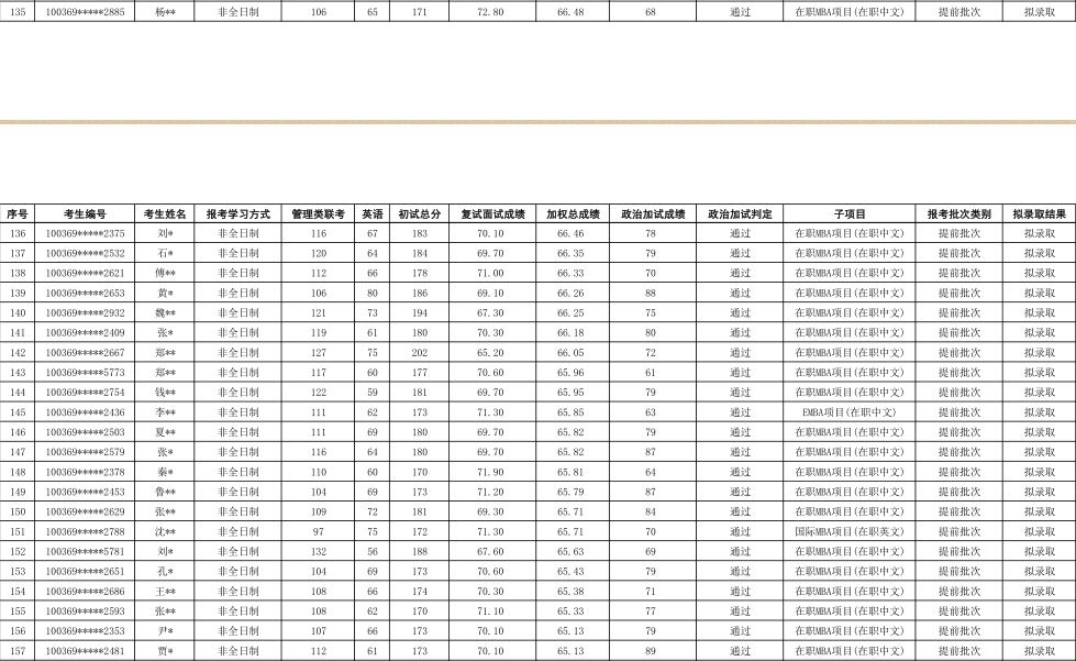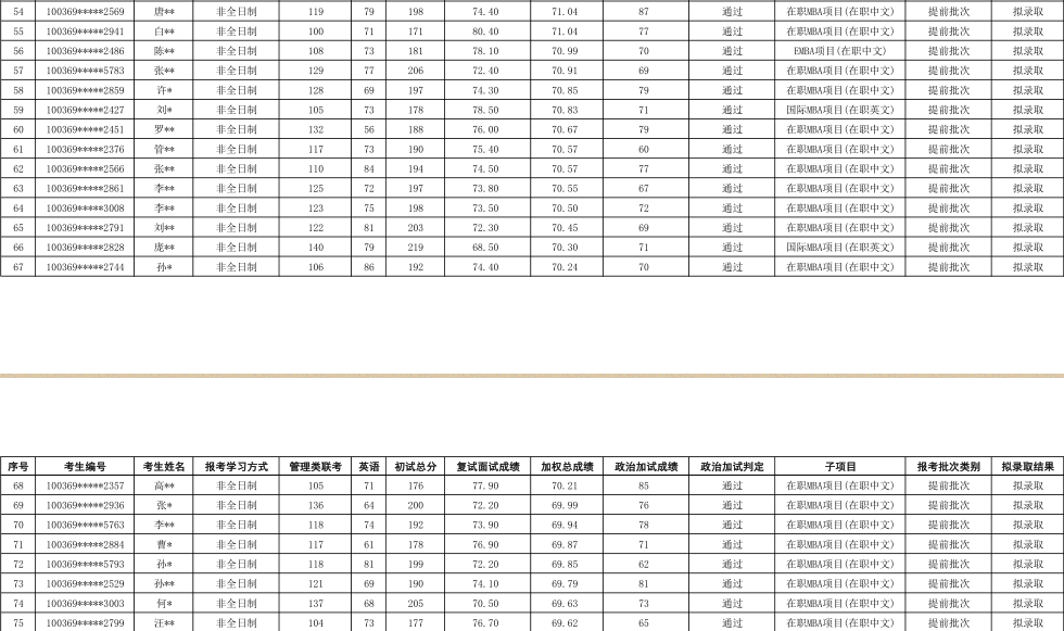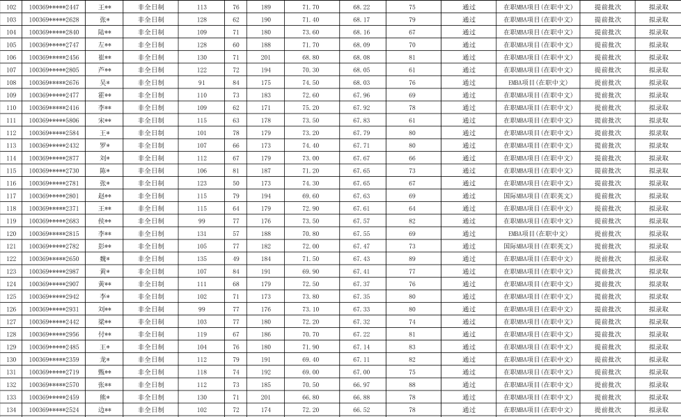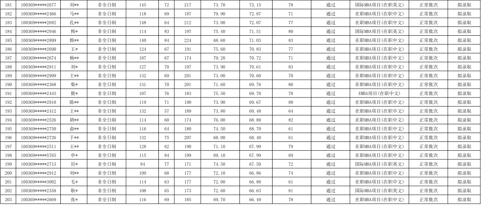 2019年对外经济贸易大学工商管理硕士(MBA非全日制)专业研究生拟录取名单