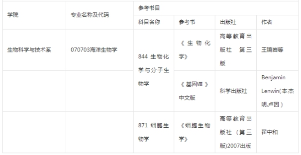 2019年清华大学海洋生物学考研参考书目与考试科目