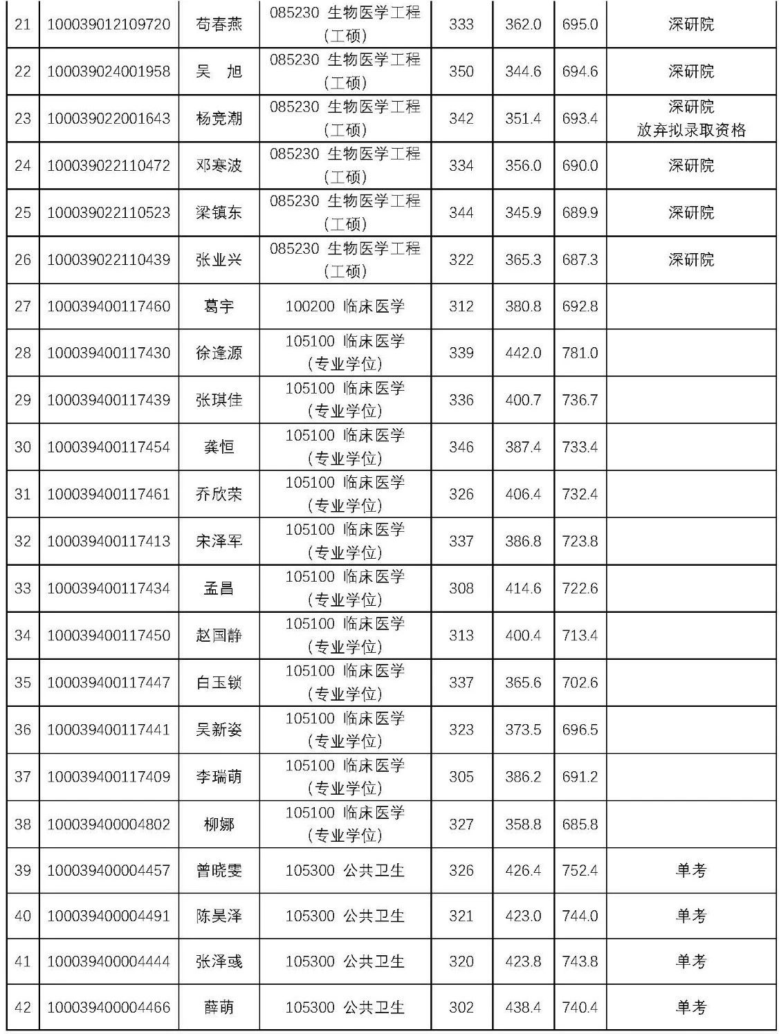 2019年清华大学医学院硕士研究生拟录取名单