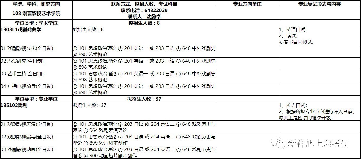 2020年上海师范大学谢晋影视艺术学院考研招生专业目录