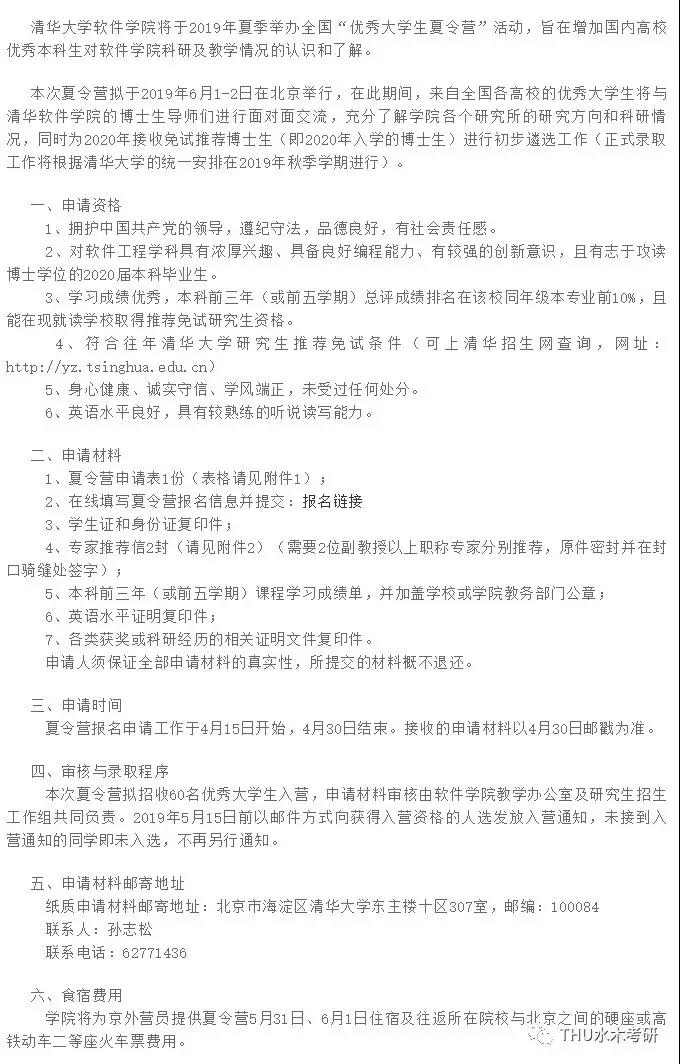 清华大学软件学院2019年优秀大学生夏令营报名通知