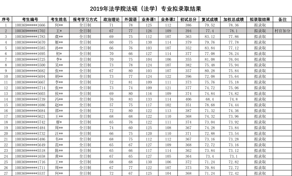 2019年对外经济贸易大学法律硕士(法学)专业研究生拟录取名单