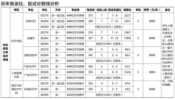 从近四年的数据可以看出,华东师范大学复试分数线一直很高,尤其是热门专业—世界经济学专业,这也是可以理解的,毕竟华东师大在上海仅次于复旦、交大、财大的名校,报考人数较多,复试线肯定会提高。所以,要想顺利考上华东师范大学一定要好好准备初试。从另一个角度看,华东师大在复试时,初试成绩占60%,复试占40%,这对在初试分数较高的考生,肯定会占很大优势。华东师范大学经济学考研辅导:新祥旭一对一课程13371689632
