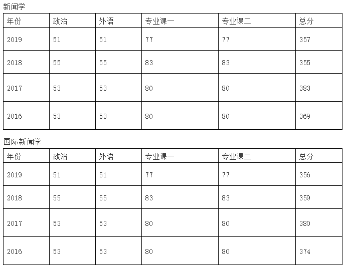 招生专业:国际新闻学(0503Z5)(学硕) 招生院系:传播研究院 招生人数:15人,推免7人 研究方向: 01国际新闻史论 02国际新闻业务 03国际新闻与跨文化交流 04国际媒体 05国际新闻传播 考试科目: 01-04方向 ①101思想政治理论 注:国际新闻学05方向只接收推免生,为国际新闻传播硕士研究生班所设方向 新闻传播史论 何梓华:《新闻理论教程》(修订版) 新闻实务 公共部分 新闻学指定答题部分: 国际新闻学指定部分 复试参考书(2019官方指定) 新闻学 9020新闻史 ①《中国新闻事业史教程》哈艳秋 ②《中国新闻传播史》方汉奇 ③《外国新闻史教程》(修订版)李磊 ④《现代传播》(期刊)、《新闻与传播研究》(期刊)、《国际新闻界》(期刊)、《新闻大学》(期刊) 9021新闻理论 ①《新闻理论》雷跃捷 ②《新闻学概论》(马克思主义工程重点教材)集体创作 ③《新闻理论教程》何梓华 ④ 与专业相关学术刊物 9022新闻业务 ①《新闻编辑》方毅华 ②《新闻评论》李舒 ③《媒介分析》陈作平 9107网络新闻与新媒体 ①《新媒体概论》第六/七版宫承波 ②《网络传播概论》第四版彭兰 9023报刊理论与实践(中国传媒大学党报党刊研究中心王武录等主编) ①《人民共和国党报论坛2015年卷》 国际新闻学 9036国际新闻 ①《国际新闻学:本体、方法与功能》刘笑盈 ②《西方新闻理论评析》徐耀魁 ③《国际新闻与跨文化传播》蔡帼芬、徐琴媛 ④《事实与建构:国际新闻的理论与实践 》蔡帼芬、刘笑盈 ⑤《当代西方新闻媒体》李良荣等 ⑥《中外新闻传播史》刘笑盈 ⑦《国际传播学导论》郭可 ⑧《国际新闻传播》刘笑盈 712新闻传播史论 一、名词解释 明报 张季鸾 无冕之王 网络迷因 健康传播 后真相时代 二、简答 试论中国新闻史的“文人论政”和“史家办报” 当前国际电视新闻频道的格局 新闻事实和新闻真实的异同 网络传播的特点 三、论述 试论自律与他律的关系 如何理解传媒对事实的建构 815新闻实务 一、名词 中央广播电视总台 连续报道 媒介定位 洗稿 众筹新闻 二、简答 如何运用融媒体平台与新媒体手段报道重大主题事件? 网络新媒体与传统媒体在新闻稿件来源的异同。 人工智能对内容生产与传播的影响。 三、论述 如何看待非职业人员通过拍摄视频的方式进行舆论监督?UGC、PGC、PUGC对新闻生产的影响? 四、消息 通讯《脚比路长 —心为民——记云南省迪庆州德钦县羊拉乡党委书记立青农布》改消息。300字以内 五、评论 为《代表不连任尚未落实的建议怎么办 新任代表接力监督》写一篇配评论。800字左右 新闻与传播专硕真题请关注公众号:新闻与传播硕士考研联盟 比如《传播学基础》这本书,分为绪论、上编和下编,绪论简单介绍了传播的几大模式和类型;上编第一章中主要内容有芝加哥学派四杰(第三节)和传播学四大奠基人(第三节)、传播学中三大学派:批判学派和技术学派(第四节)、经验学派主要在本书下编;第二章传播学的衍生分类经常考名词解释;第三章传播学研究方法分两类:定性和定量,主要考名词解释或简答;下编共五章,是按5w模式来写,每章按控制研究、内容研究、媒介研究、受众研究、传播效果研究来写。捋清目录再看书思路会清楚不少,脑中对传播学也会形成一个整体的框架,比零碎的复习轻松一些。