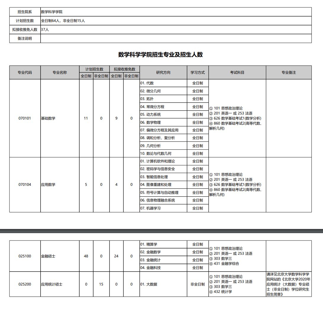 最新!2020年北京大学数学科学学院研究生招生目录.pdf
