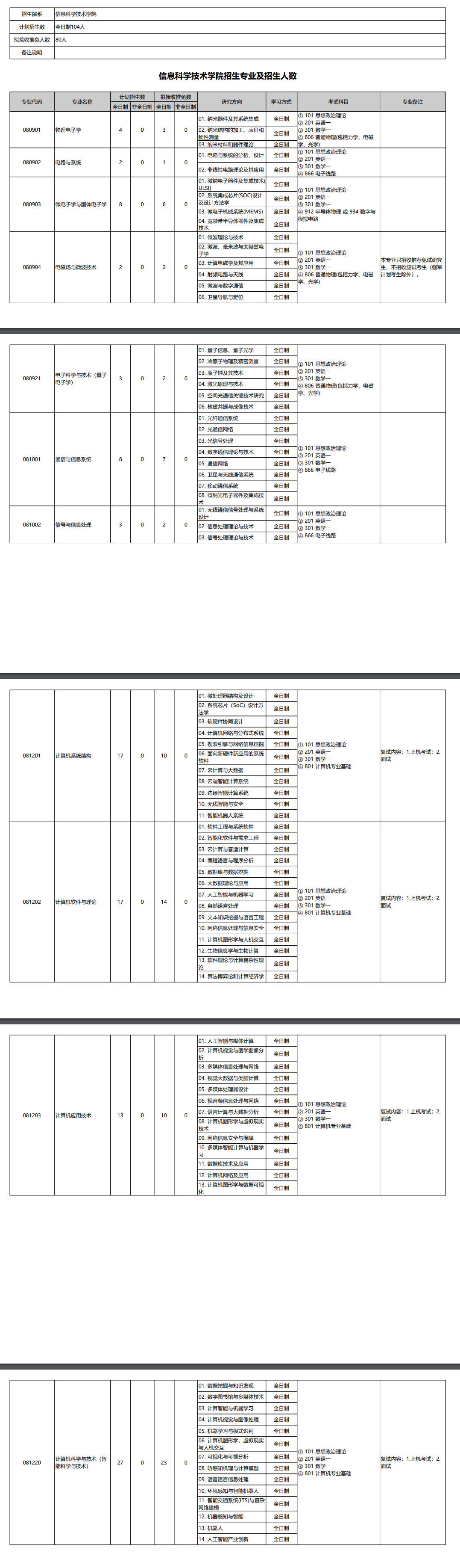 最新!2020年北京大学信息科学与技术学院研究生招生专业目录公布!