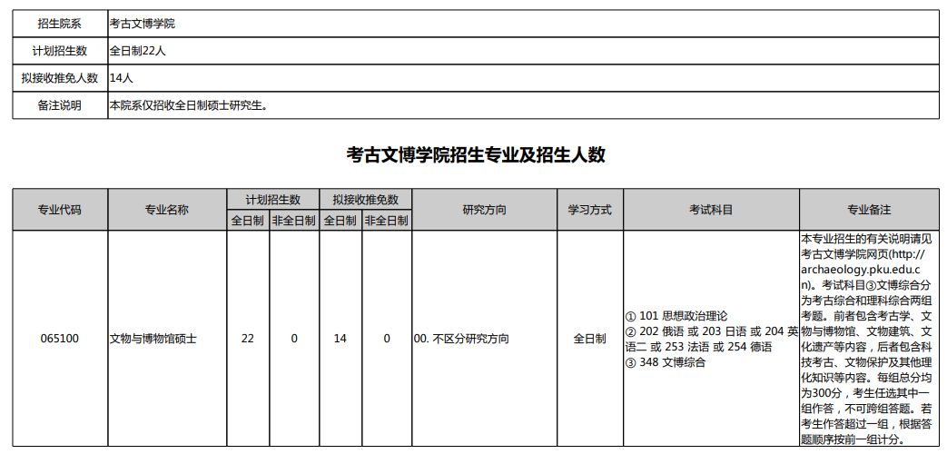 最新!2020年北京大学考古文博学院(校本部)研究生招生专业目录公布!