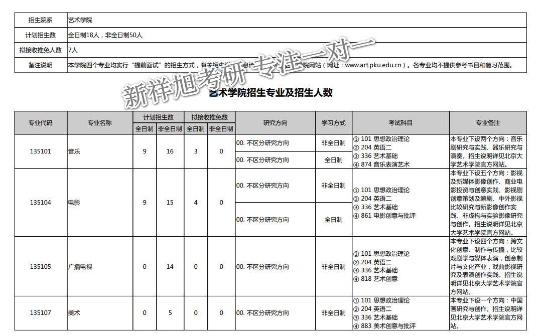 最新!2020年北京大学考艺术学院(校本部)研究生招生专业目录公布!