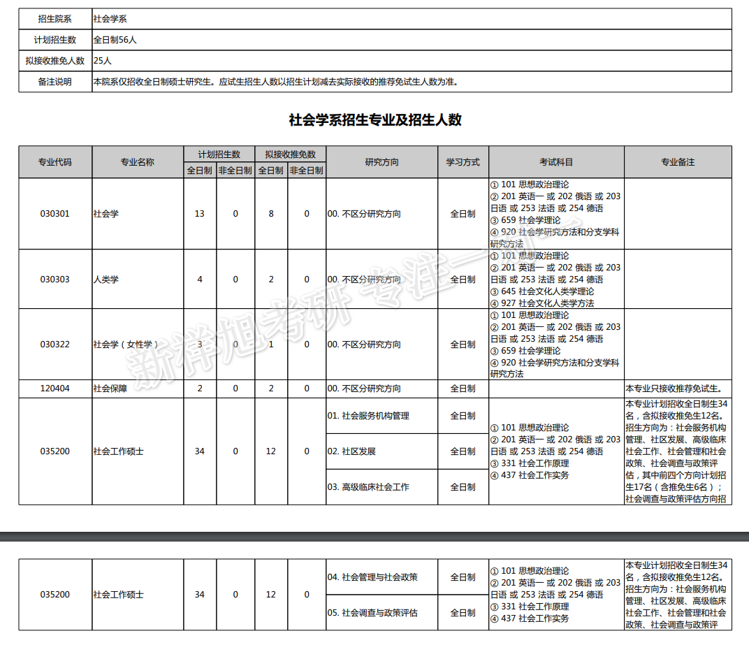 最新!2020年北京大学社会学系(校本部)研究生招生专业目录公布!