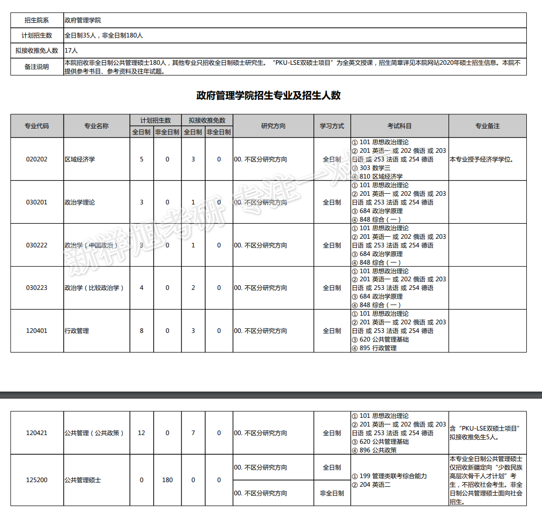 最新!2020年北京大学政府管理学院(校本部)研究生招生专业目录公布!