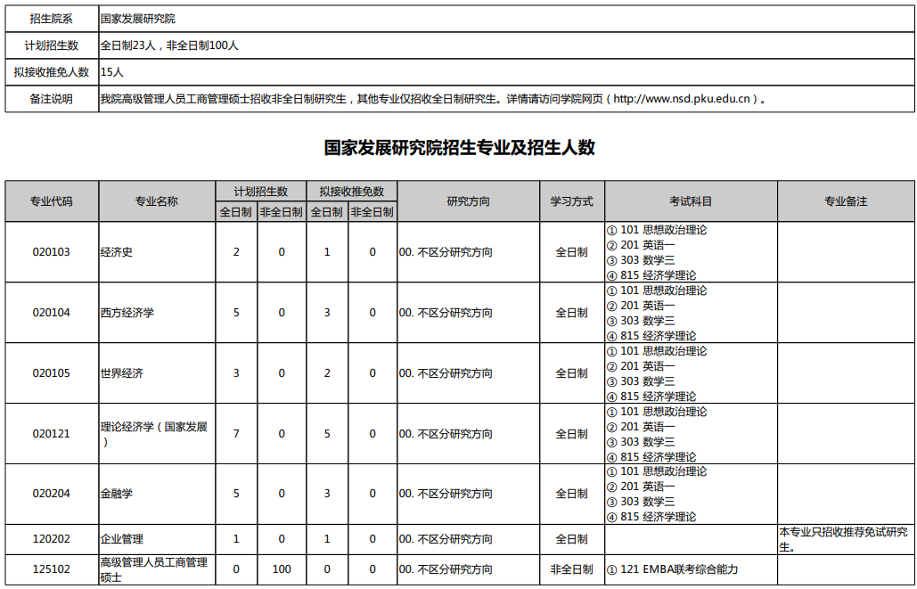 最新!2020年北京大学国家发展研究院(校本部)研究生招生专业目录公布!
