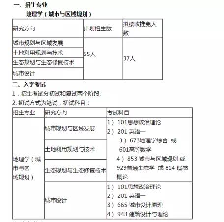 图一:北京大学城市规划与设计学院招生方向及考生科目