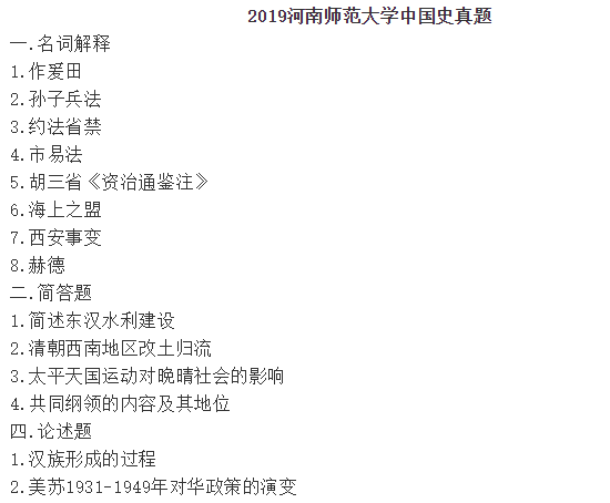 2019河南师范大学中国史考研真题