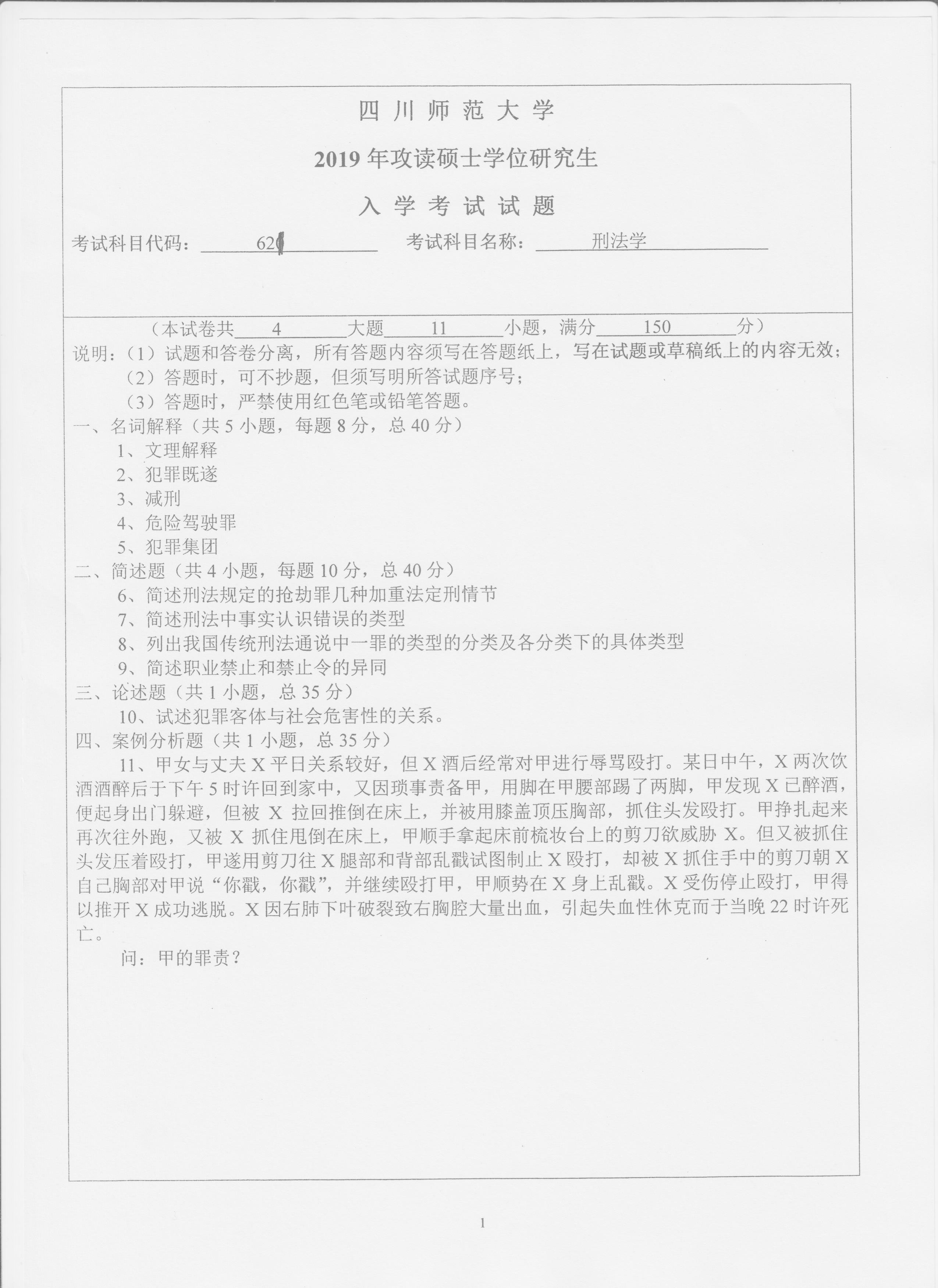 2019年四川师范大学刑法学考研真题完整版--新祥旭