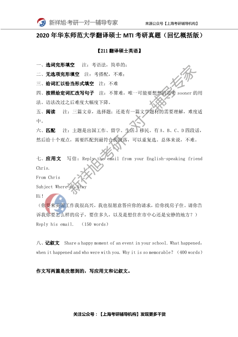 【2020华东师范大学翻译硕士MTI考研真题】
