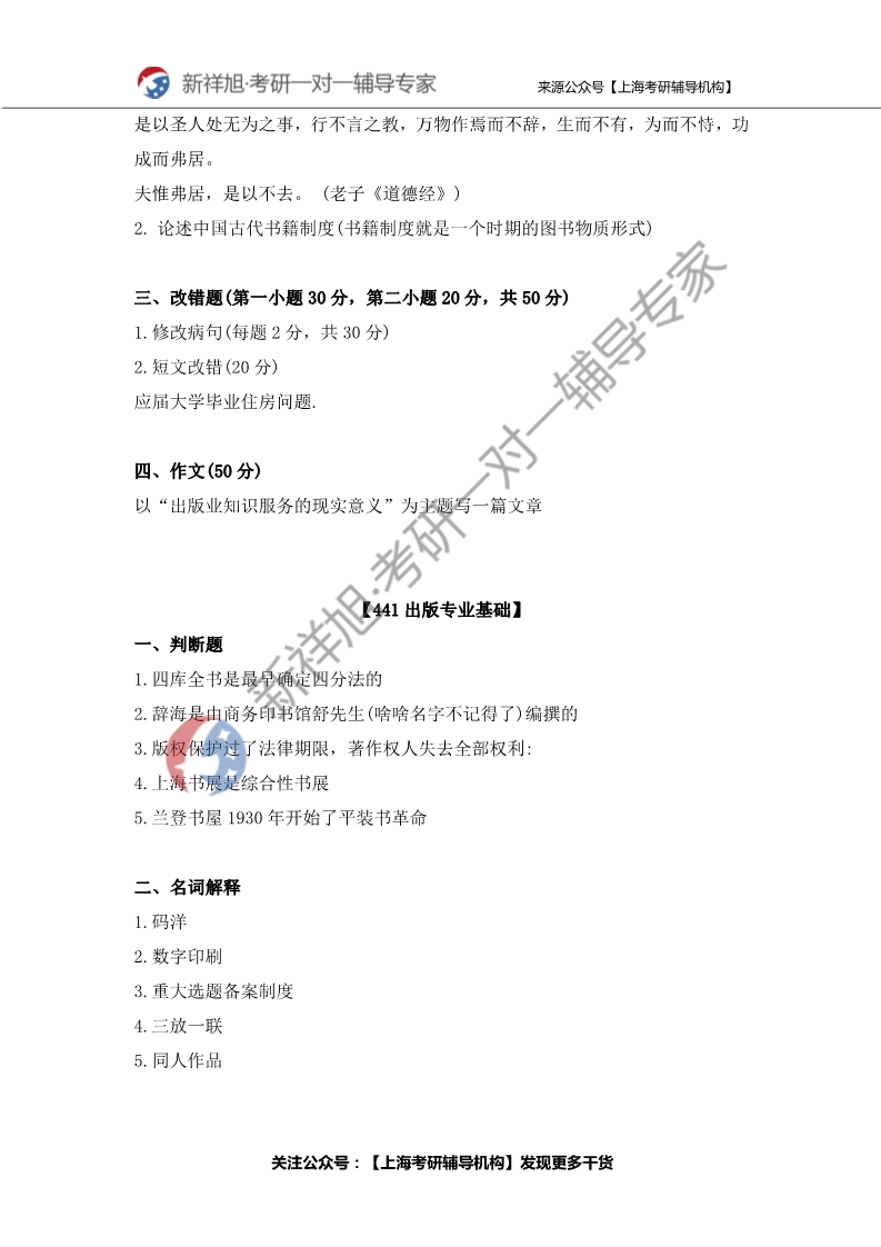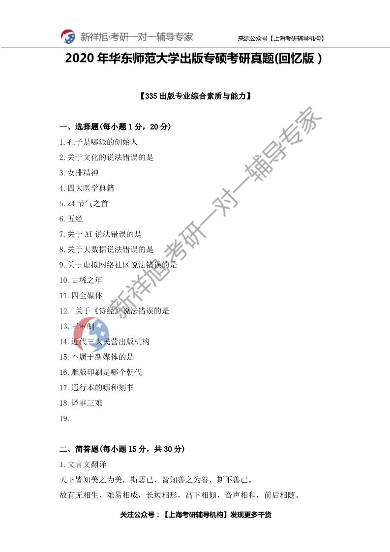 【2020华东师范大学335出版专硕考研真题】