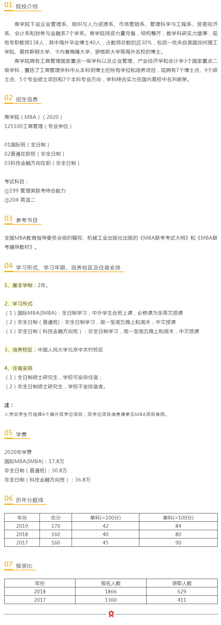 2021年中国人民大学商学院工商管理硕士(MBA)考研招生信息、学费、历年分数线、报录比