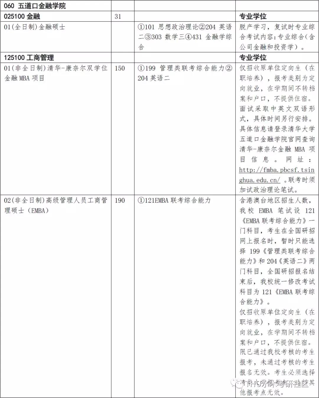 清华考研辅导班:清华大学2021年五道口金融学院硕士研究生招生专业目录