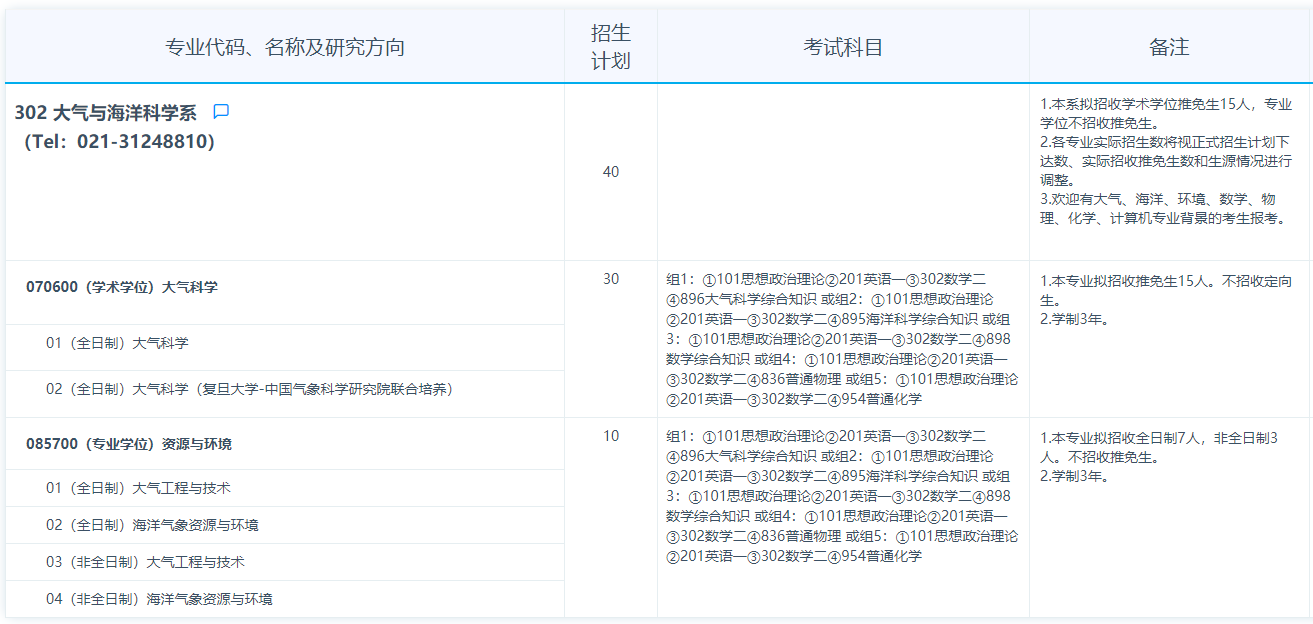 复旦大学考研辅导班:复旦大学2021年大气海洋科学系招生专业目录